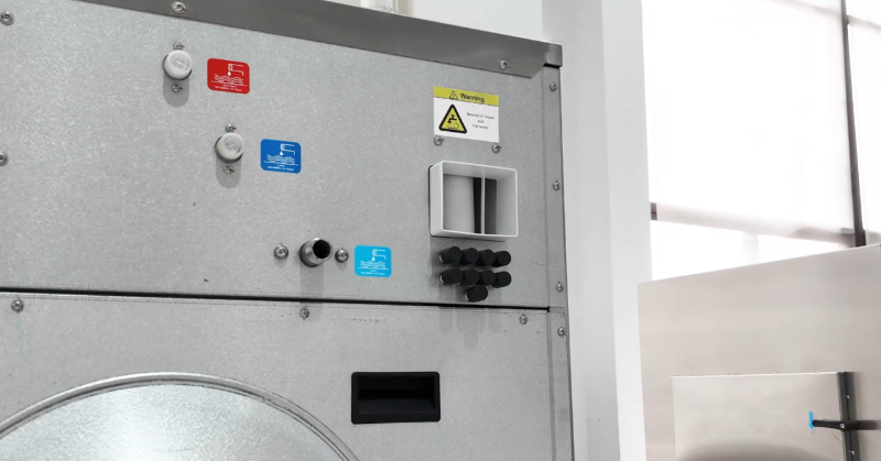 Pintu keluar pakaian bersih direka dengan saluran penimbal dwi-lapisan.