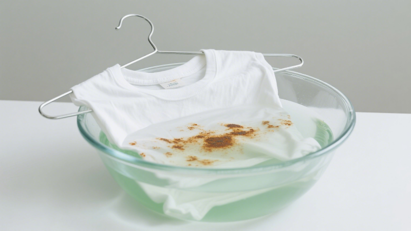 Sapukan penghilang noda pada noda → rendam pakaian dengan teliti dalam larutan serbuk pembersih.